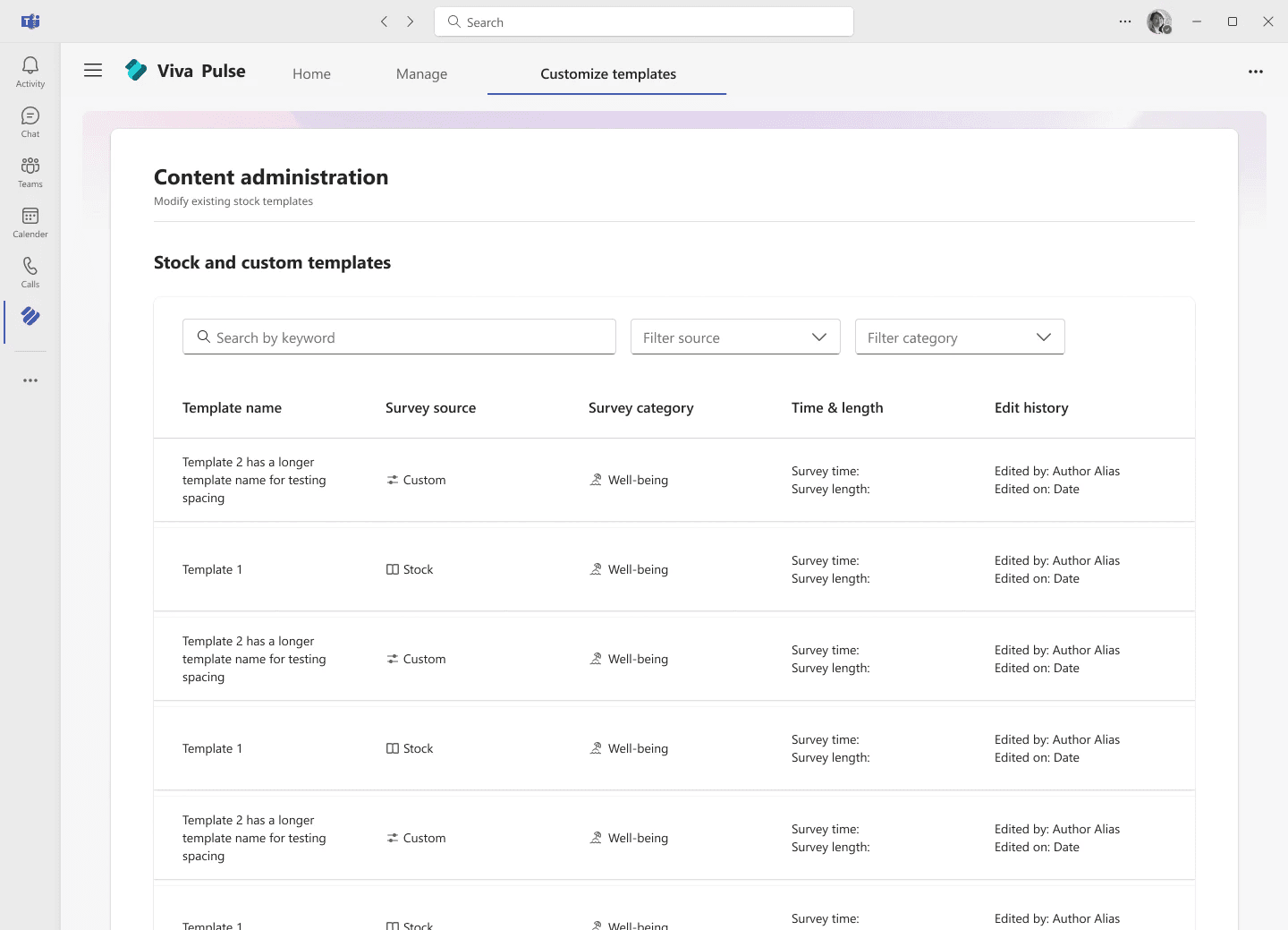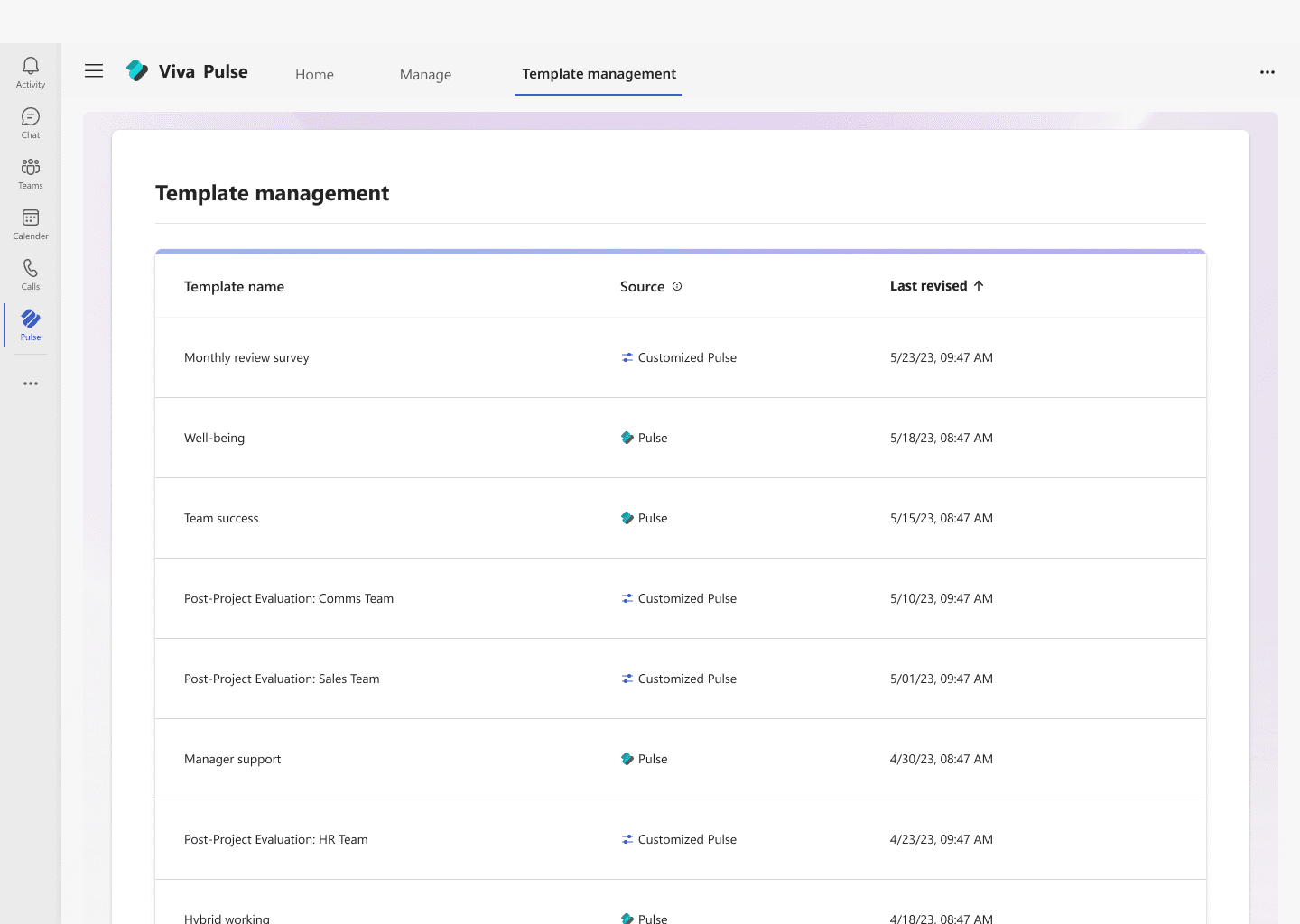 A survey content management portal that allows admins to easily choose the surveys they want to update and modify content with a design familiar to all Pulse users