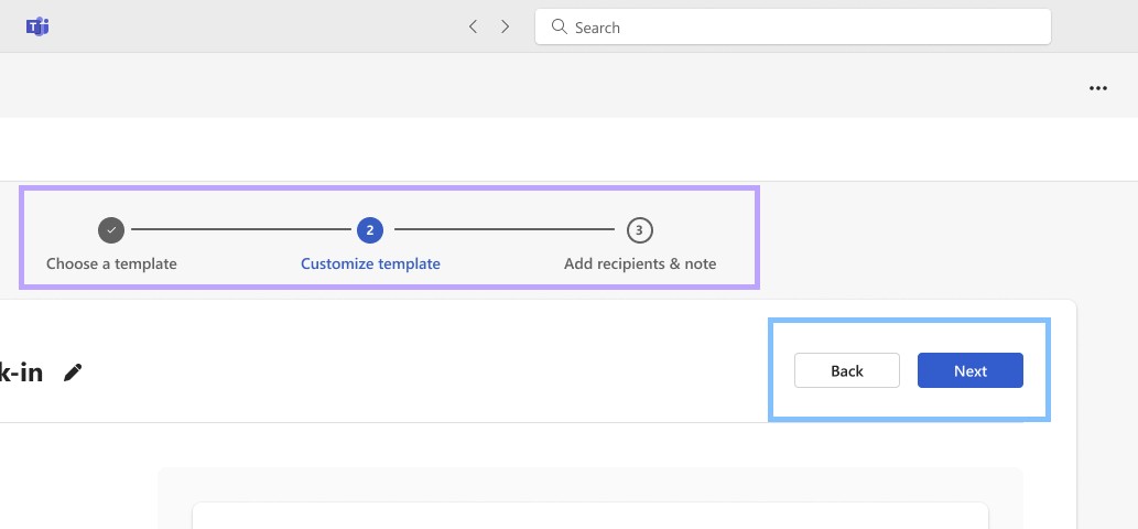 Since creating a template in our feature was kept to a two step process, the wizard was removed. Users could also publish a custom survey once they made changes