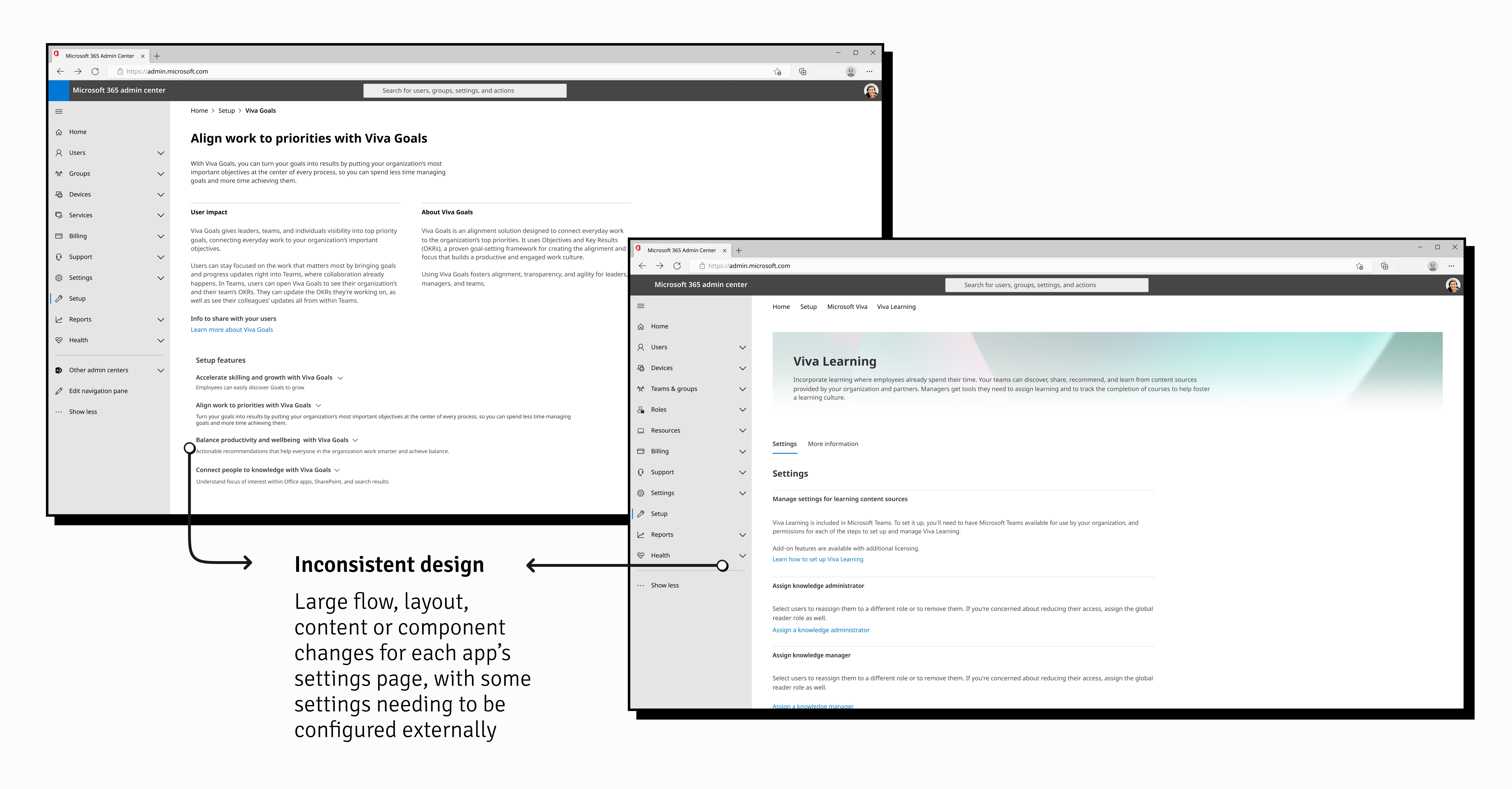 The look and feel of setup pages could vary wildly and sometimes occur outside of the Admin Center almost entirely