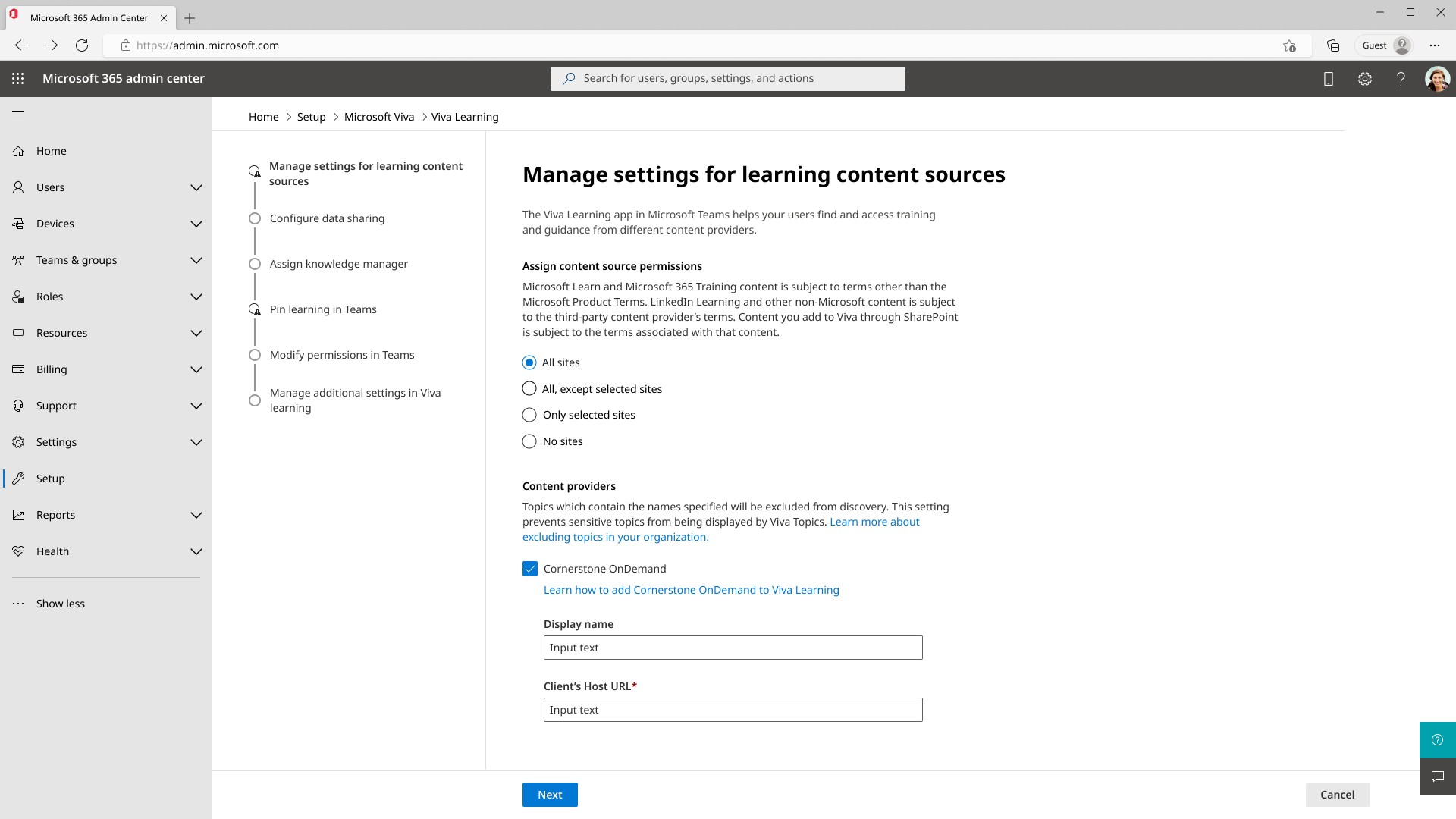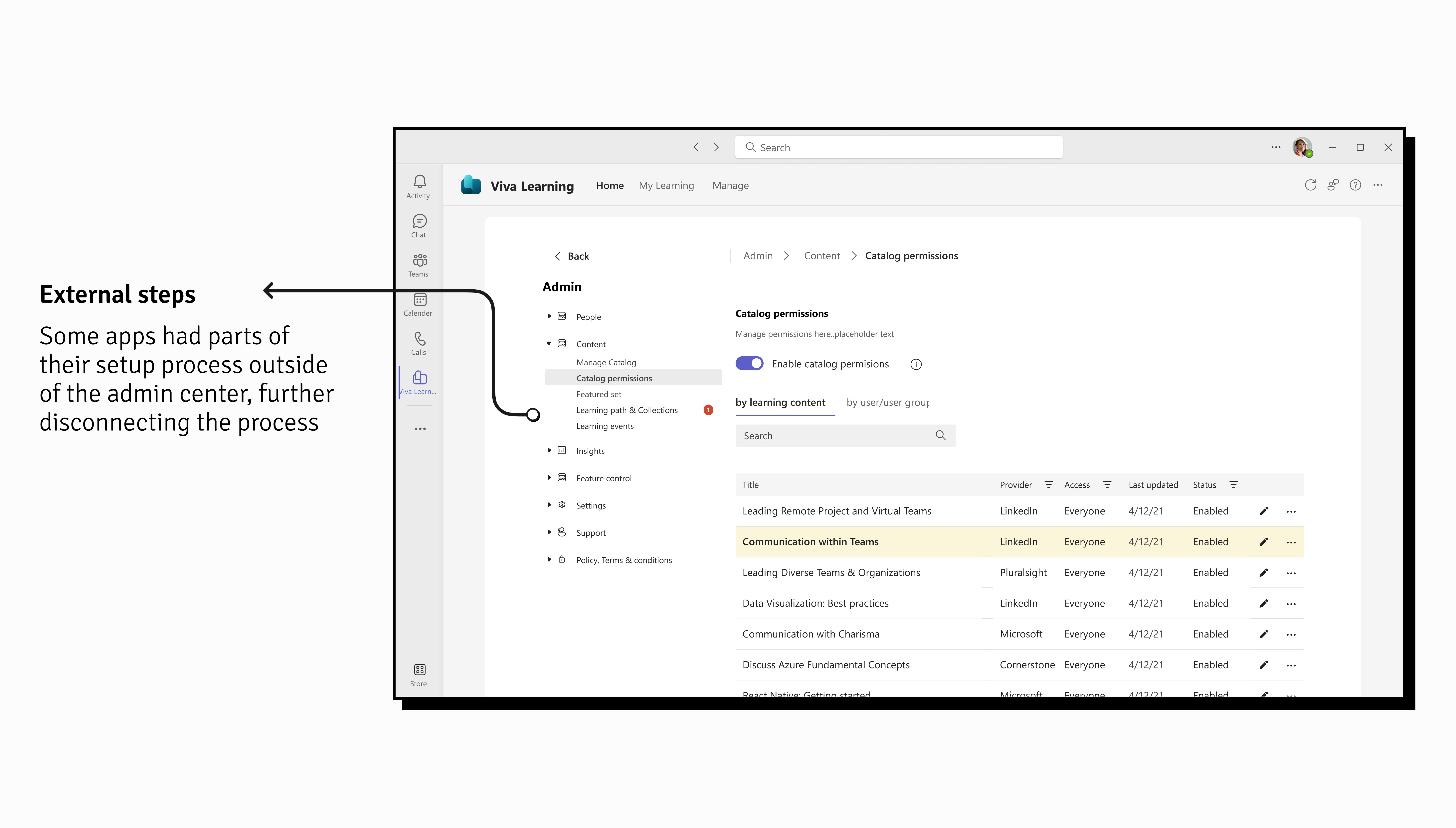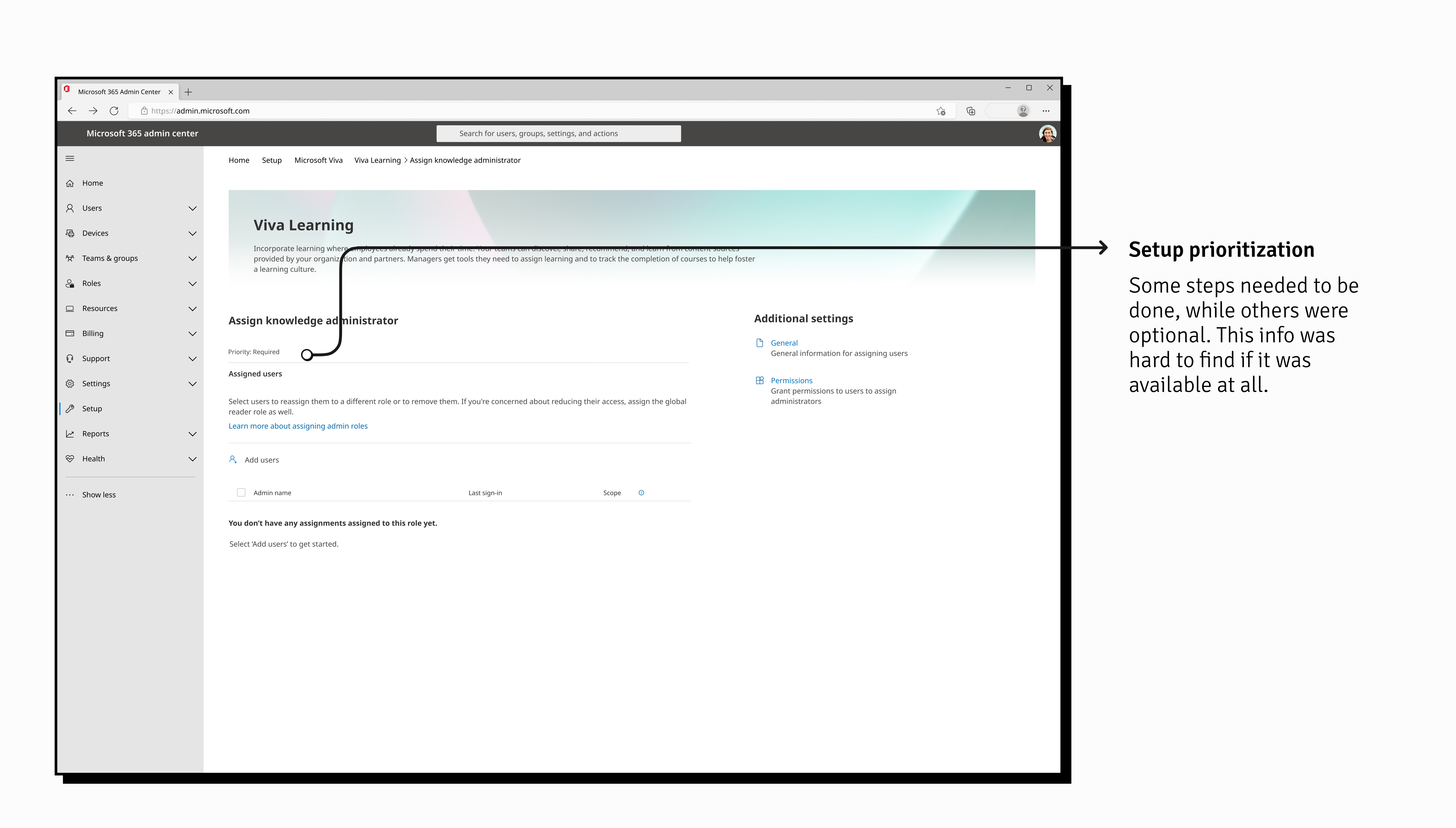 We hypothesized that the shift in design may have strayed too far off from a user's existing mental model for setup in the admin center. To counter this, we also added in an onboarding process to guide users through the new system.