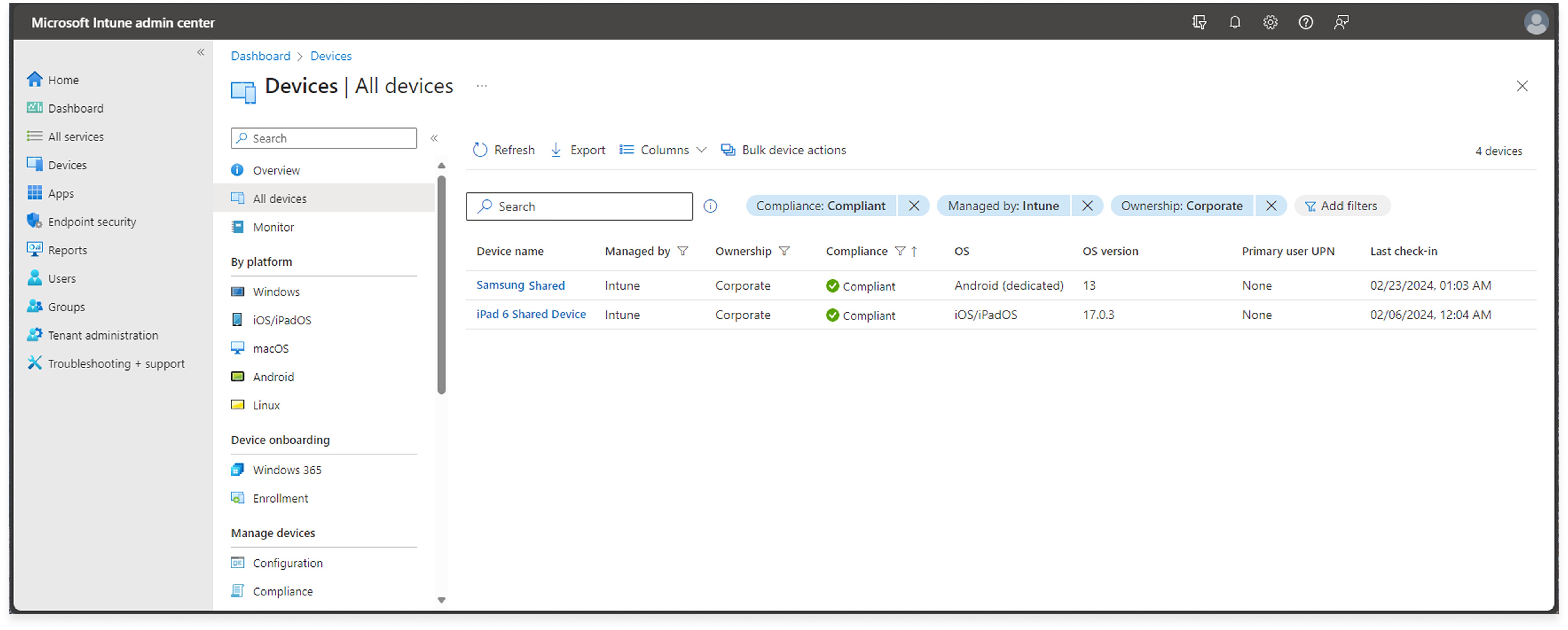 To best understand existing Admin design patterns that could indicate progress, status, health or compliance, I audited existing admin centers like Microsoft Intune's