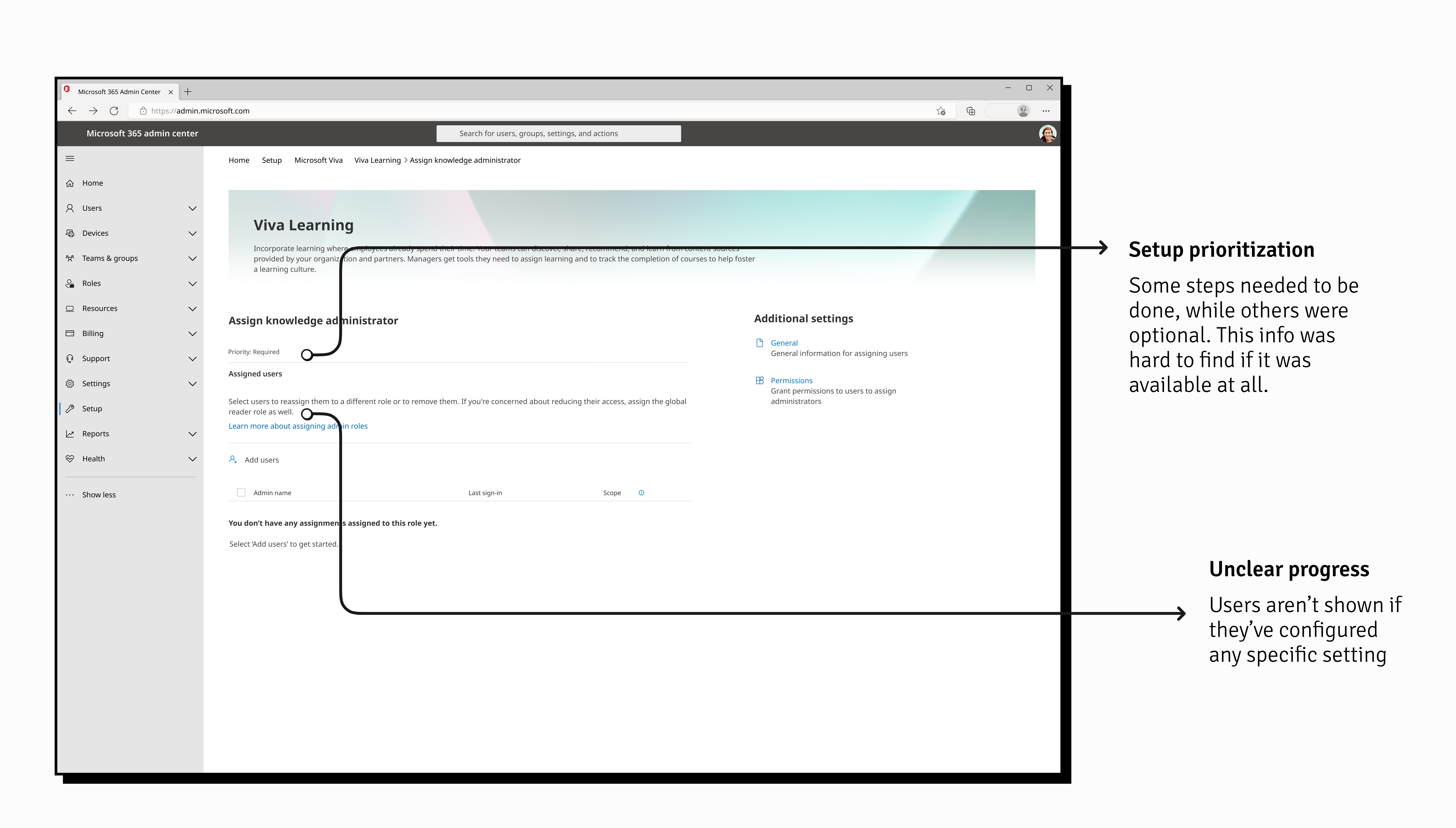 We hypothesized that the shift in design may have strayed too far off from a user's existing mental model for setup in the admin center.