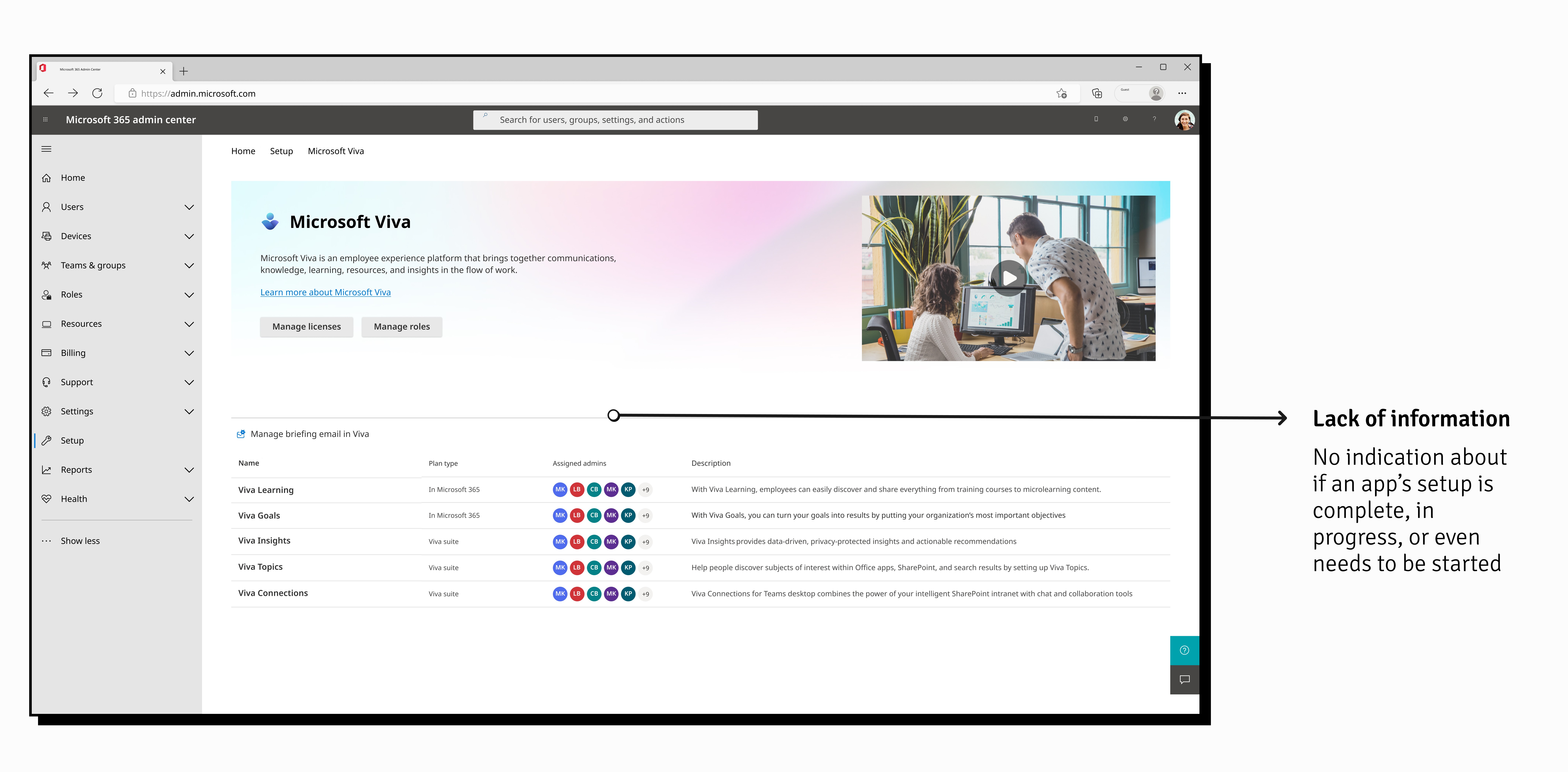 Revising the Viva product suite's setup and management dashboard to improve setup times and streamline the process